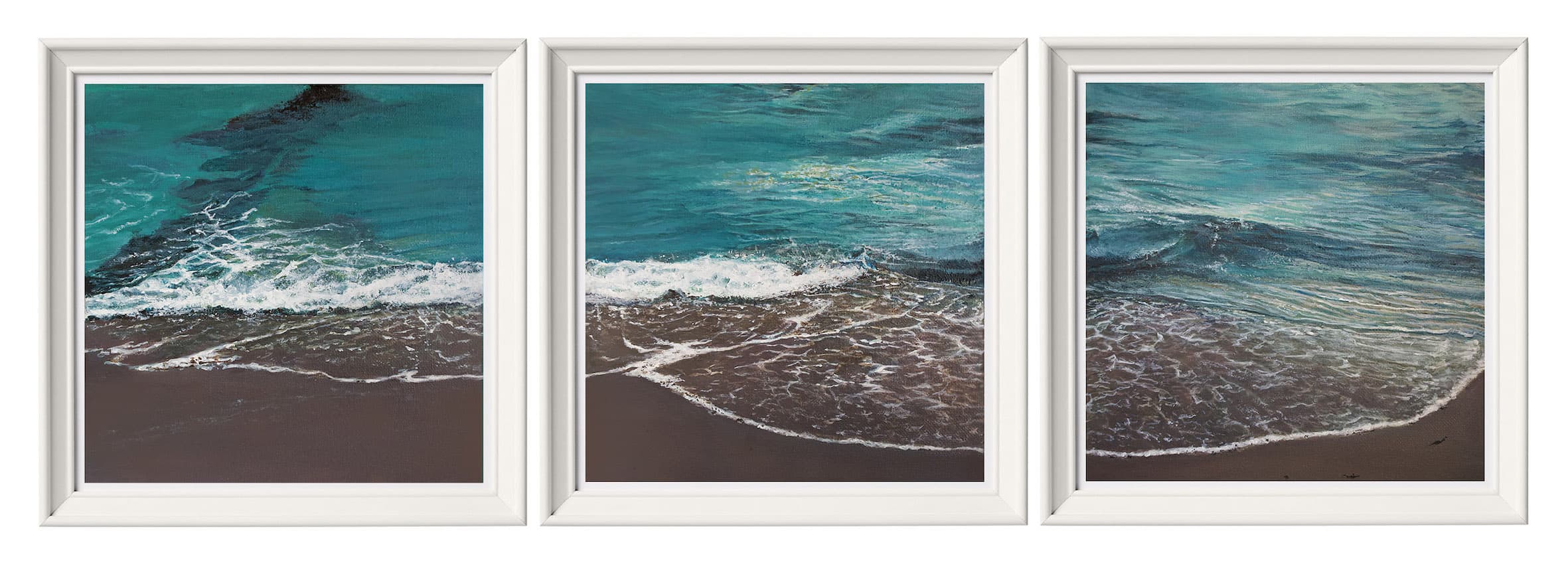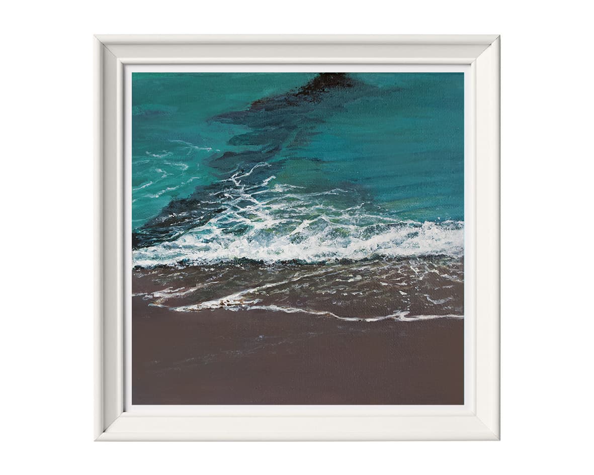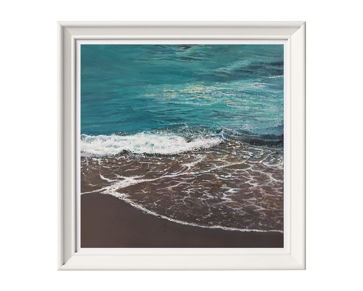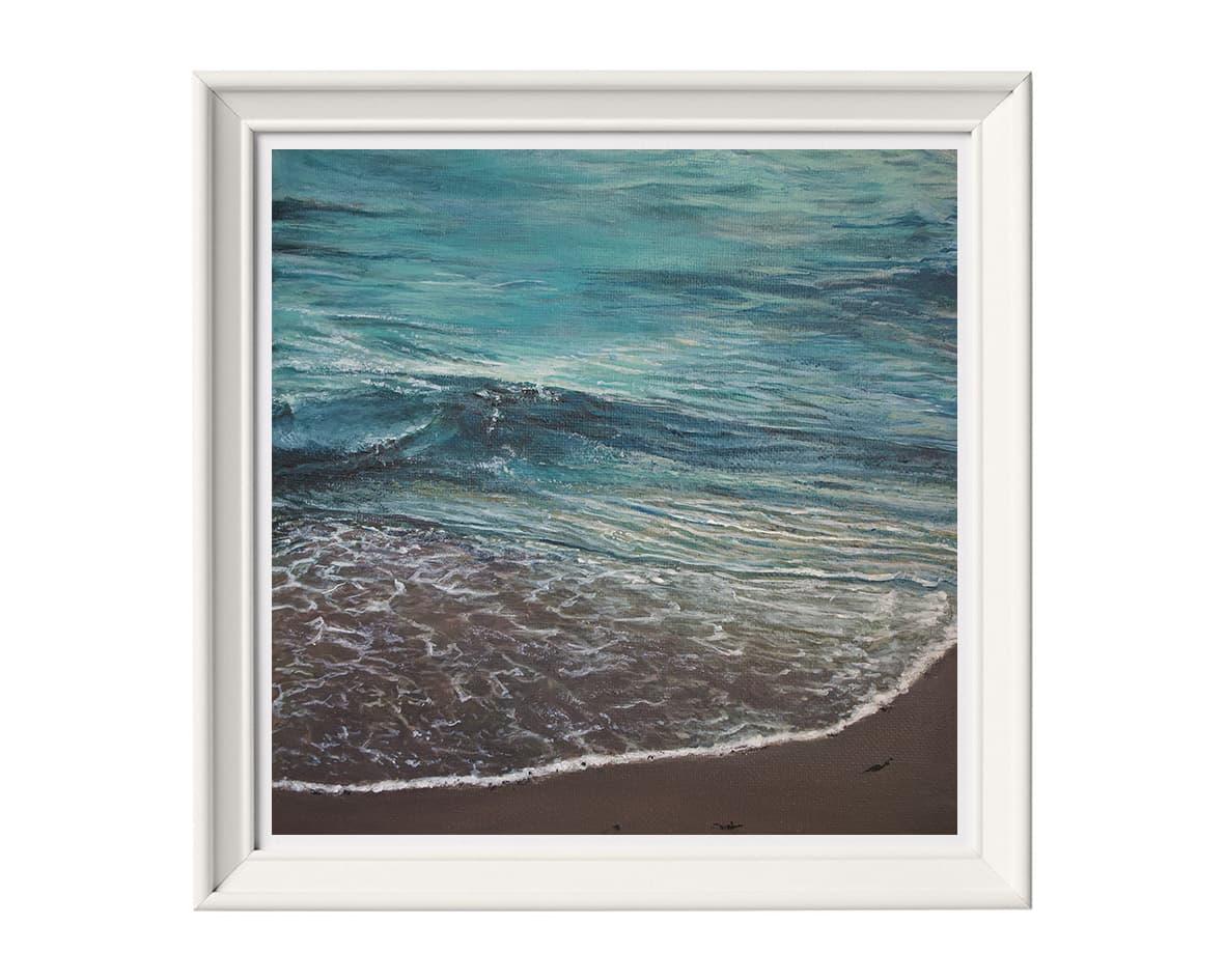 In the summer of 2021, I had a trip to Shapinsay, Scotland. At the coast, sea waves whispered their calming sound while quietly sweeping on and off the beach. Do you see these calming whispers in the paintings?